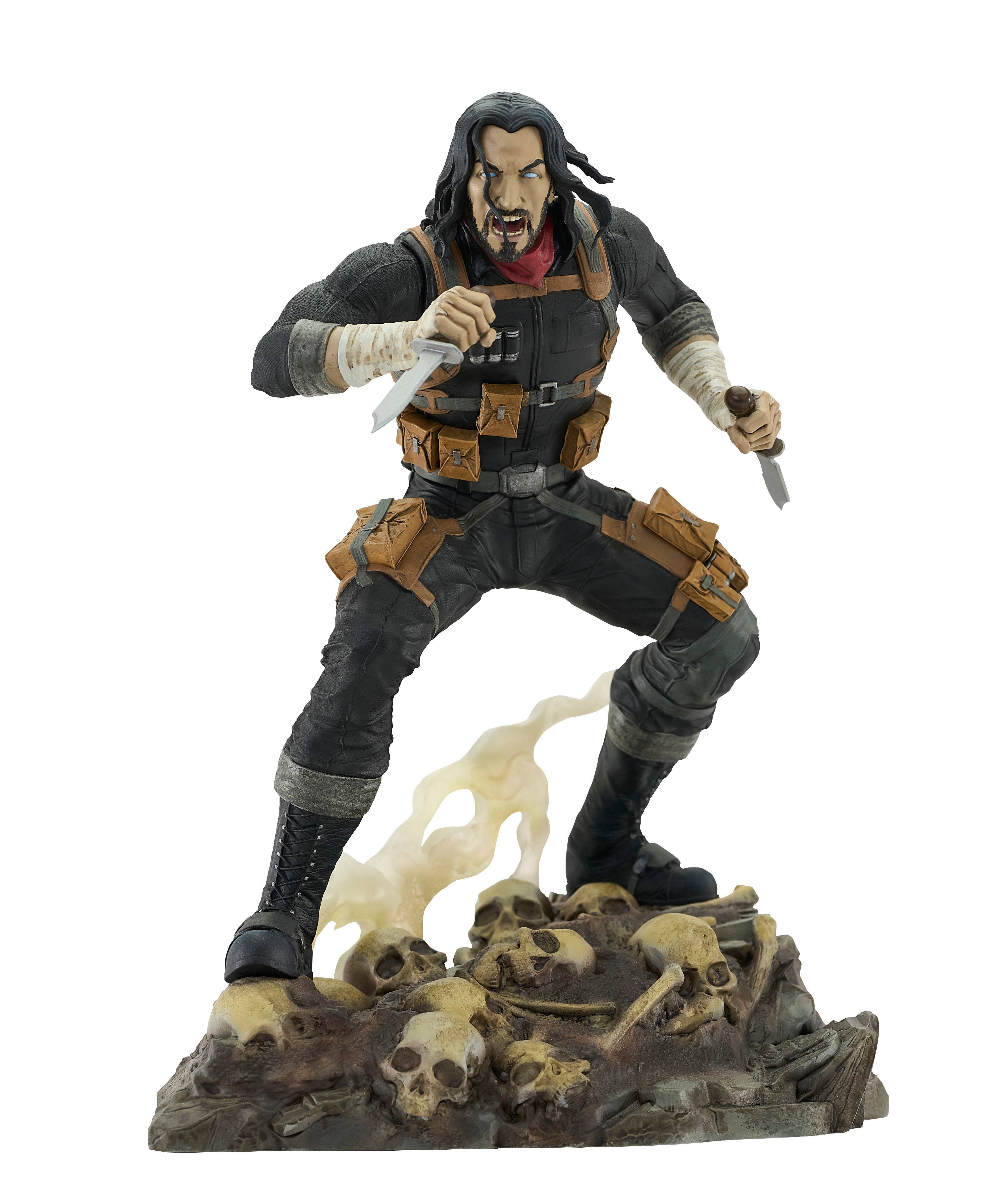 Les comics BRZRKR racontent l'épopée sombre du guerrier immortel B à travers son existence éternelle. Cette statue capture l'apparence contemporaine de B, le montrant fonçant au combat vêtu d'un équipement tactique, des couteaux doubles en main.