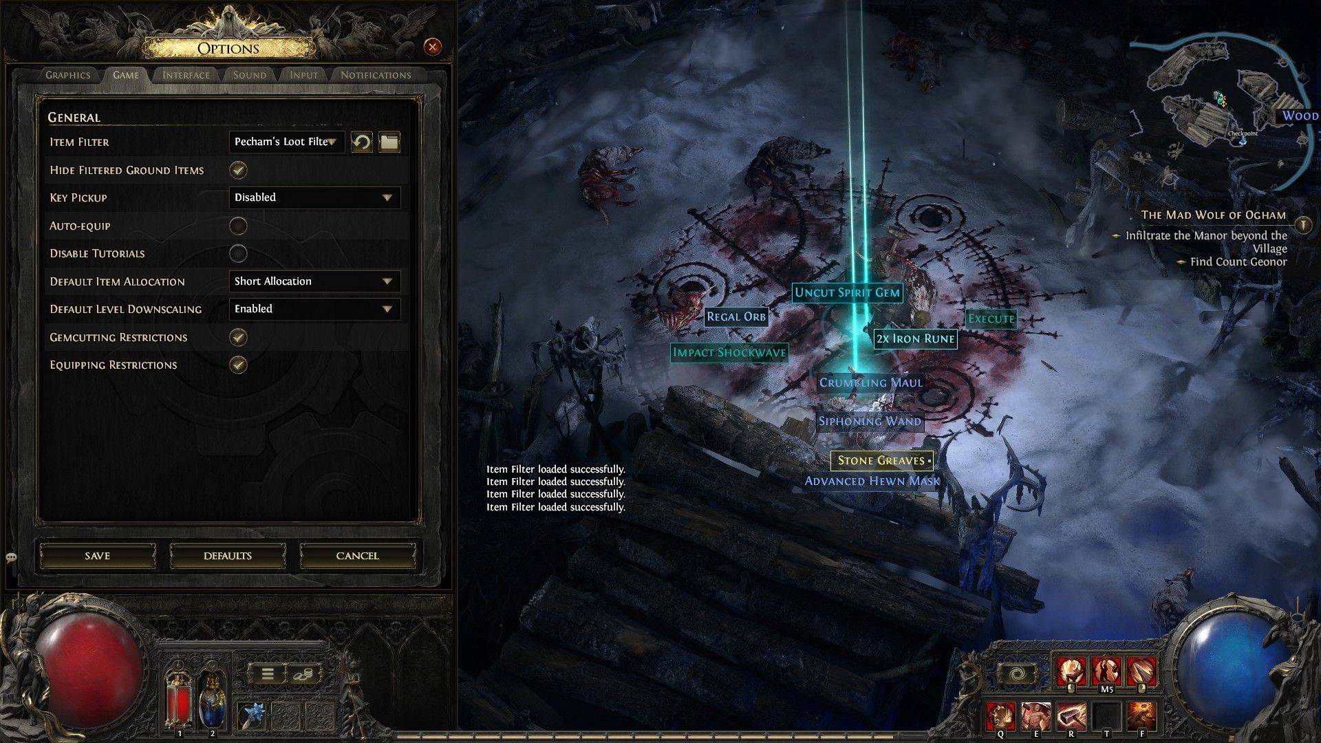 Maintenant que vous suivez un filtre de butin sur le site officiel, lancez le jeu et accédez au menu Options. Allez dans l'onglet Jeu, et tout en haut vous trouverez l'option Filtre d'objets. Sélectionnez le filtre que vous suivez dans le menu déroulant, puis cliquez sur Enregistrer. À partir de maintenant, les objets qui tombent dans le jeu afficheront des étiquettes, des couleurs ou des effets sonores différents selon le filtre que vous avez activé.